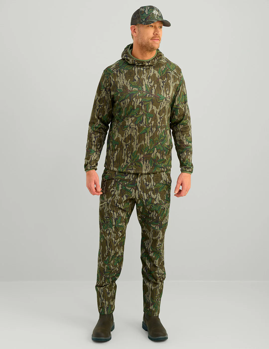 The new Axe Camo Hoodie is the piece that you'll always have on you. Comfort meets performance in this lightweight fleece camo hoodie featuring a leaf pattern. With a large pass-through hand warmer pocket and DWR treatment that provides protection from that early season drizzle and fog, the Axe Hoodie is the new standard in versatile layering performance.